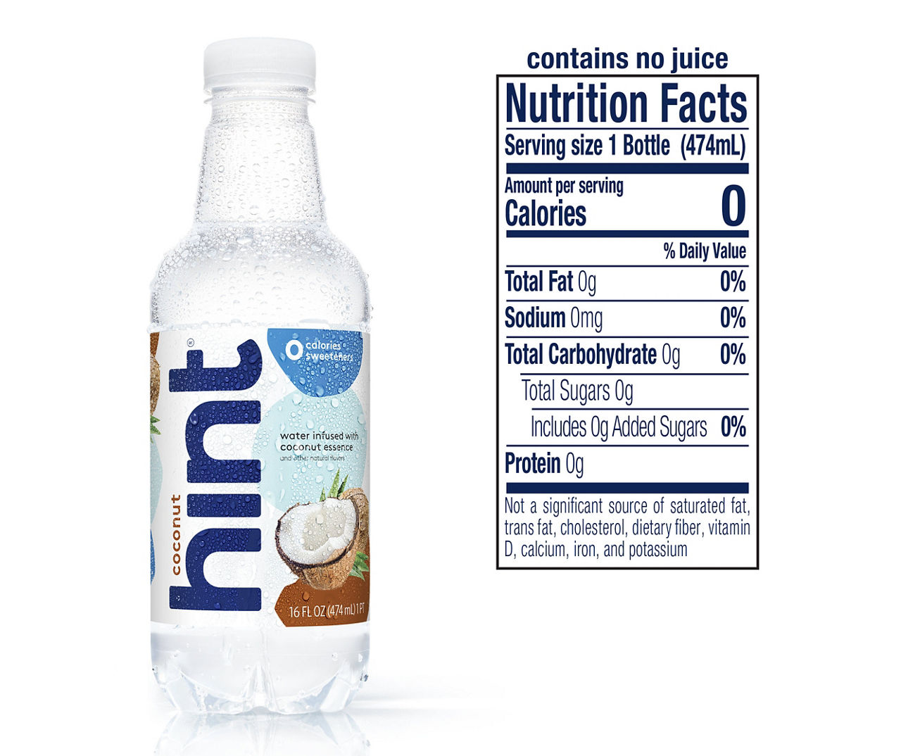 Hint : Water : Target hint Blueberry Lemon Enhanced Water - 6pk/16 fl oz Bottles. 66. SNAP EBT eligible. $8.29. When purchased online. Hint Coconut Flavored Water - 16 Fl Oz Bottle : Target Hint Water tastes so delicious that it actually helps people drink more water. BETTER HYDRATION, BETTER HEALTH: Staying hydrated can improve your mood, complexion, and muscle and joint health. Hint Water is also vegan, gluten-free, nut-free, NSF Non-GMO Certified, and kosher certified. Hint is the perfect way to hydrate deliciously.