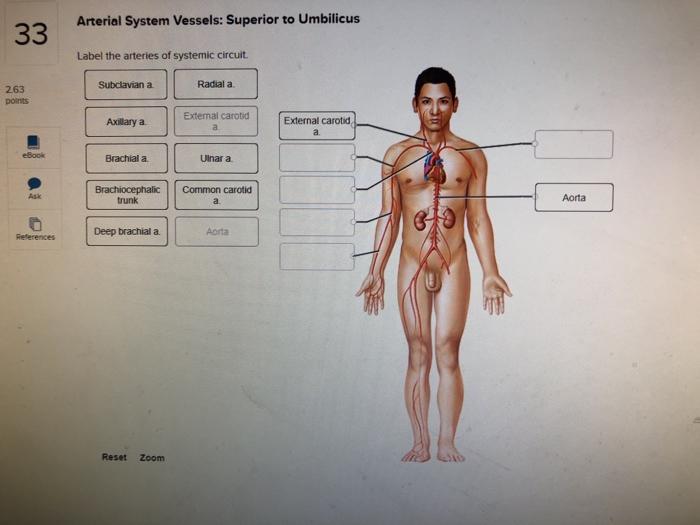 Solved Label the arteries of the systemic circuit. Please | Chegg.com Label the arteries of systemic circuit. Axillary a. Femoral a. Common iliac a. Subclavian a. External iliac a. Brachiocephalic trunk Deep femoral a. Internal iliac a. External iliac a. Popliteal a. Ulnar a. Common carotid a. Aorta Internal iliac a. Brachial a. Radial a. Previous question Next question
