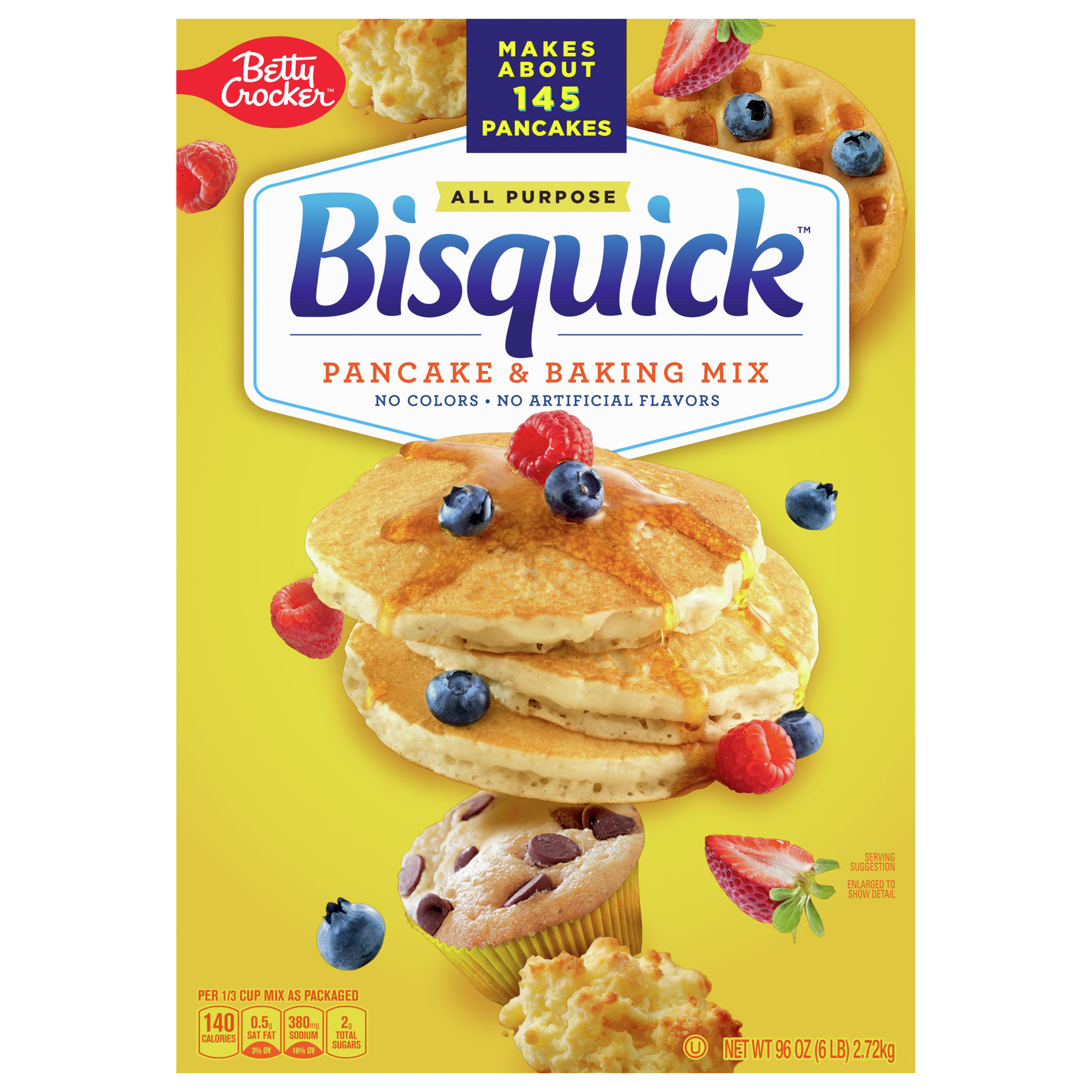 Bisquick Pancake & Baking Mix: calories, nutrition analysis & more ... Buy the following basic ingredients at the supermarket: * flour * baking powder * salt * canola oil or butter Here's the 2 step recipe: 1. Pour 1 cup flour, 1½ tsp baking powder, ½ tsp salt, and 1 tbsp oil or melted butter into a mixing bowl. 2. Mix. Butter based recipes will taste better than ones with oil but you're going to get more ... Bisquick Pancake Mix, Buttermilk: Calories, Nutrition Analysis & More ... Personalized health review for Bisquick Pancake Mix, Buttermilk: 230 calories, nutrition grade (N/A), problematic ingredients, and more. Learn the good & bad for 250,000+ products. ... For women: 100 calories (25 grams, 6 tsp per day) For men: 150 calories (37 grams, 9 tsp per day) The FDA is more "generous", the Daily Value for added sugars is ... Calories in Bisquick Complete Mix - Pancake & Waffle and Nutrition Facts Nutrition summary: There are 210 calories in 1/2 cup (56 g) of Bisquick Complete Mix - Pancake & Waffle. Calorie breakdown: 17% fat, 72% carbs, 11% protein.